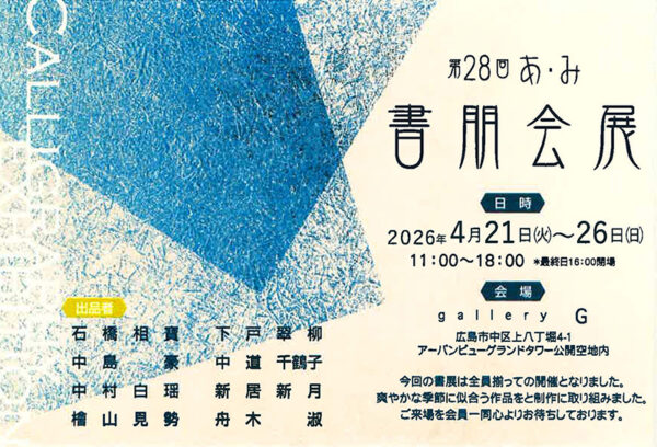 今回の書展は全員揃っての開催となりました。 爽やかな季節に似合う作品をと制作に取り組みました。
