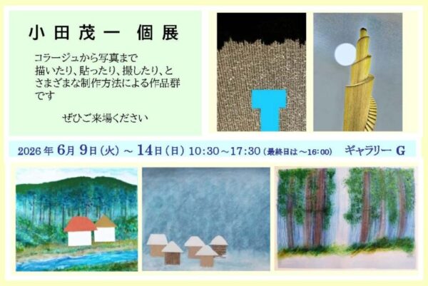 近年は風景画にコラージュを付加したり、あるいはデジタル画像に加筆したりと、さまざまな手法で作品イメージの拡張を試みています。描いて、撮して、貼って制作した30点あまりの作品を展示いたします。